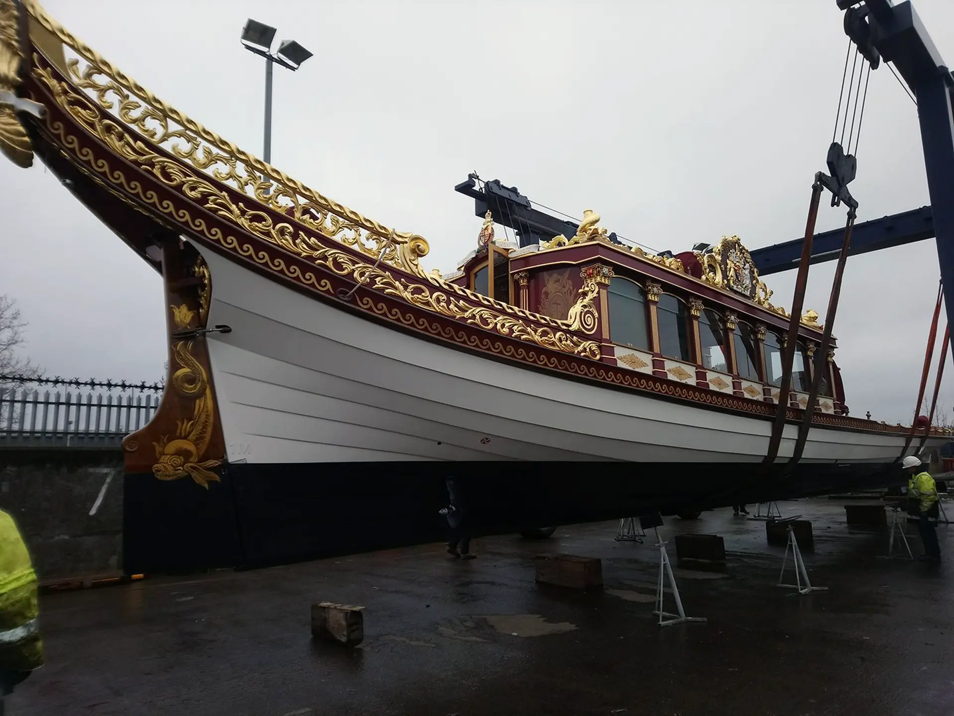 Between January and March 2018, we carried out restoration work on the magnificent Queen’s Royal Row Barge, Gloriana, which was docked in Gravesend.